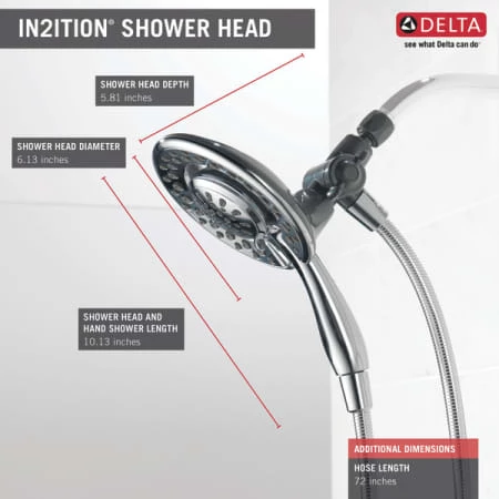Delta 1.75 GPM In2ition 2-in-1 Multi Function Shower Head and Hand Shower with 60″ Hose – Limited Lifetime Warranty