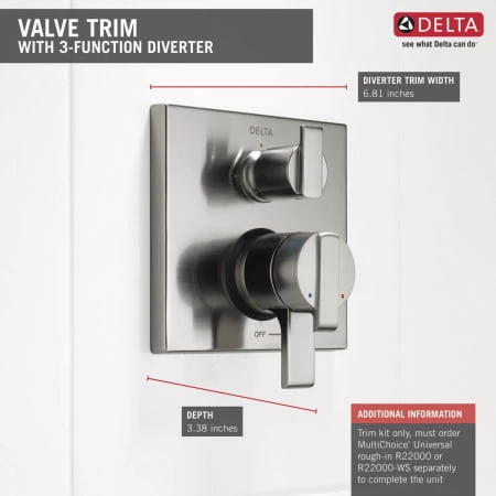 3 Function Diverter Trim – 2 Individual Positions, 1 Shared Position