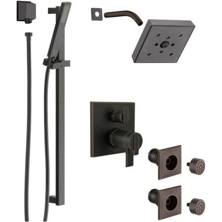 - Shower Package Includes: shower head, rough in, diverter, hand shower, slide bar, bodysprays, hose, wall supply, and valve trim