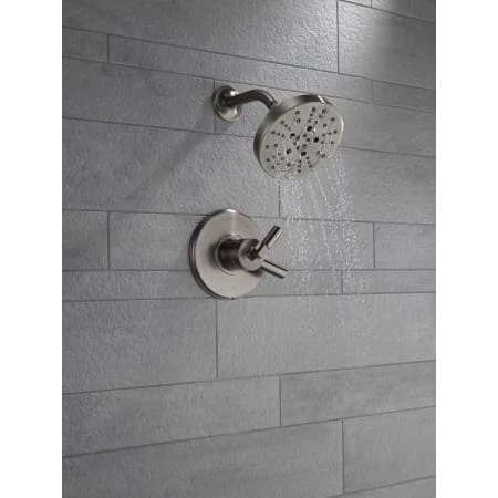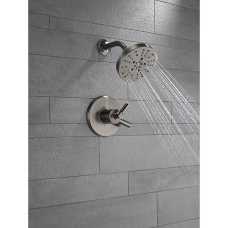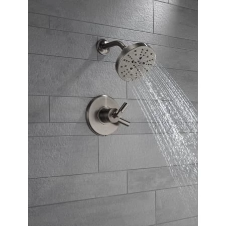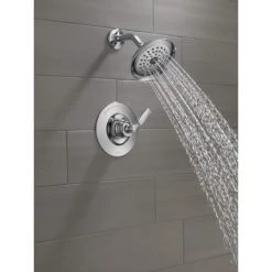- Independent Volume Control: Dual-control valve trims are what separate Delta showers from the competition. The top, smaller handle controls temperature, while the bottom, larger dial controls the water volume (flow rate). The distinct advantage to this is that you can set the temperature control to a temperature you like, and then leave it, turning the shower on and off each time with the volume control. You’ll never have to fuss with the temperature again.