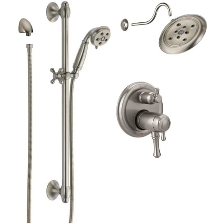 - Shower Package Includes: shower head, rough in, diverter, hand shower, slide bar, hose, wall supply, and valve trim