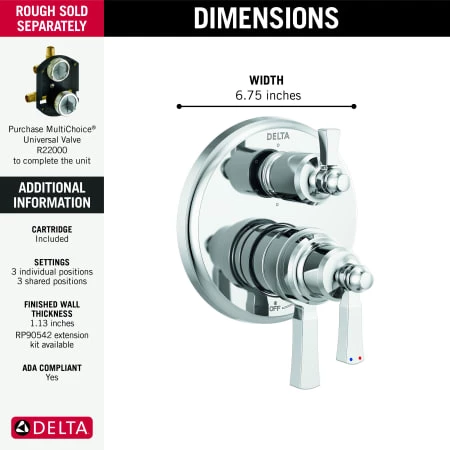 6 Function Diverter Trim – 3 Individual Positions, 3 Shared Positions