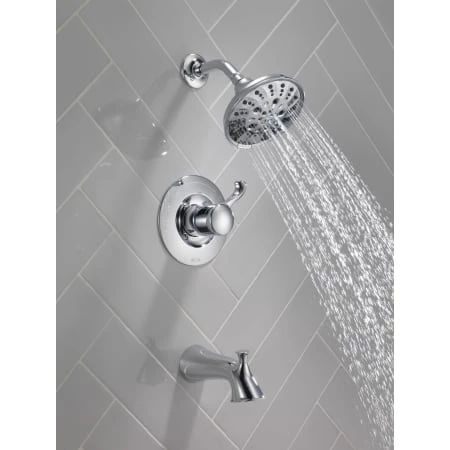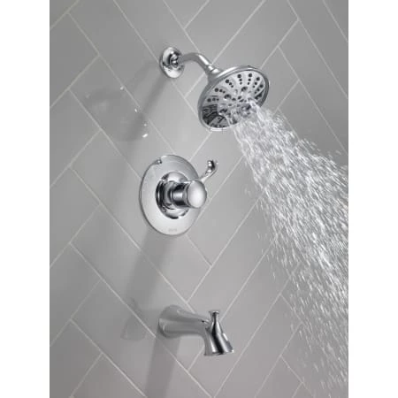 The Esato™ Bath Collection combines gently flared contours with a surprising twist in the handle for a fresh, bold look in your bath. Delta® showers with Monitor® pressure-balance valves are engineered to make sure you don’t experience a sudden and possibly unsafe change in water temperature as a result of running water elsewhere, such as using a dishwasher, flushing a toilet or running a washing machine. Our H2Okinetic® Showers look different because they are different. H2Okinetic showers are powered by an innovative technology that sculpts the water into a unique wave pattern, giving you the feeling of more water and water pressure. Our WaterSense labeled showers use at least 20% less water than the industry standard — helping you save water without compromising performance. You can install with confidence, knowing that Delta showers are backed by our Lifetime Limited Warranty.