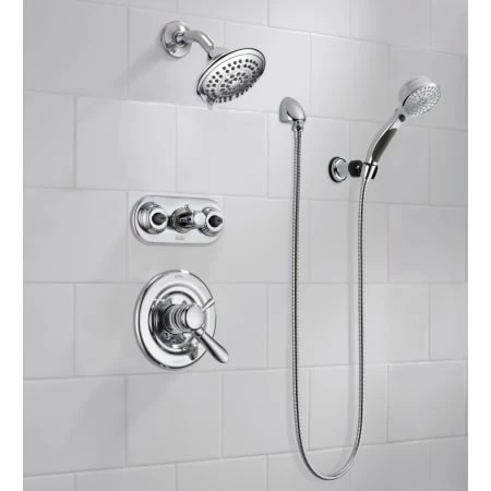 - Independent Volume Control: Dual-control valve trims are what separate Delta showers from the competition. The top, smaller handle controls temperature, while the bottom, larger dial controls the water volume (flow rate). The distinct advantage to this is that you can set the temperature control to a temperature you like, and then leave it, turning the shower on and off each time with the volume control. You’ll never have to fuss with the temperature again.