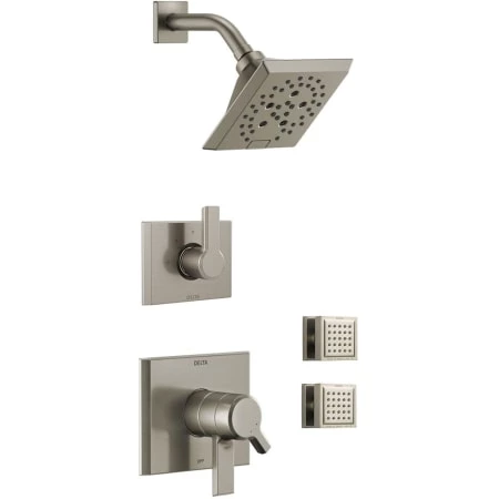 - Features a pressure balanced valve with Delta MultiChoice technology