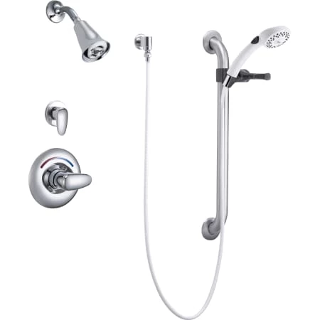 Single Handle Shower Valve Trim with H2OKinetic Single Function Showerhead Personal Hand Shower 24″ Grab / Slide Bar and Metal Lever Handles from the Commercial Series