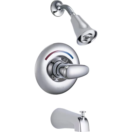 Single Handle Tub and Shower Valve Trim with Metal Lever Handle and H2OKinetic Single Function Showerhead from the Commercial Series