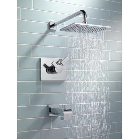 - Independent Volume Control: Dual-control valve trims are what separate Delta showers from the competition. The top, smaller handle controls temperature, while the bottom, larger dial controls the water volume (flow rate). The distinct advantage to this is that you can set the temperature control to a temperature you like, and then leave it, turning the shower on and off each time with the volume control. You’ll never have to fuss with the temperature again.