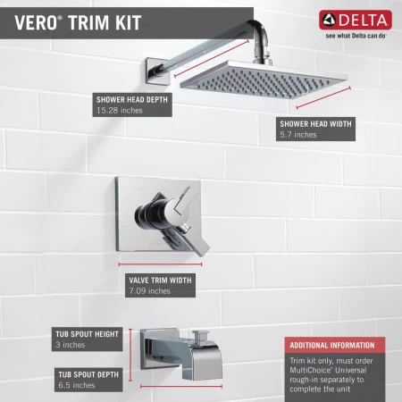 - Tub/Shower package includes: valve trim, shower head, shower arm, and tub spout