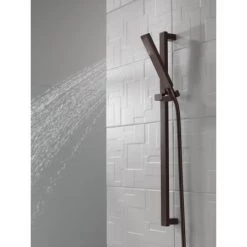 - Sliding hand shower mount adjusts the height and angle of the hand shower